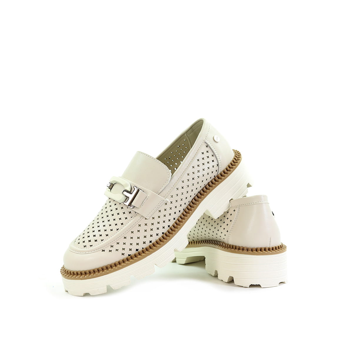 Damskie mokasyny beżowe loafersy GOE NN2N4203